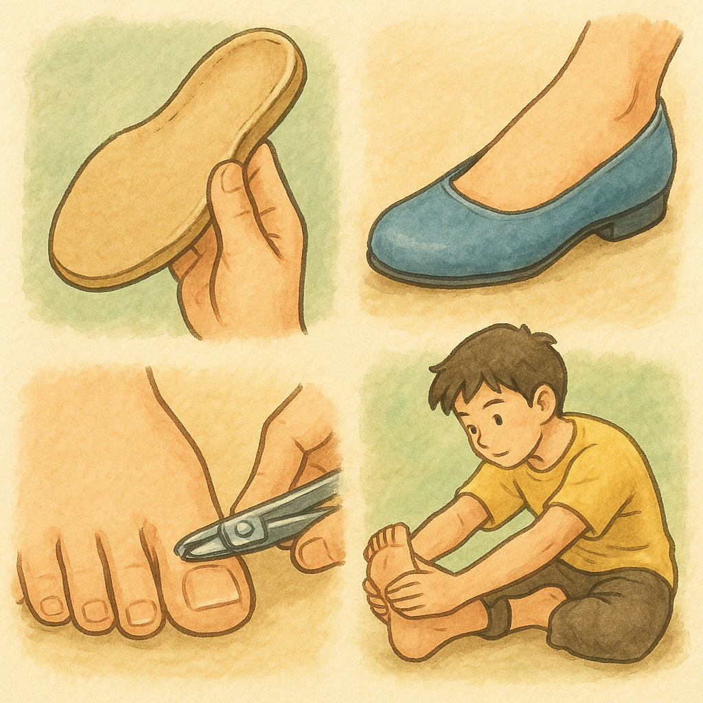 • 足の筋力をつけるトレーニングやストレッチも予防につながります