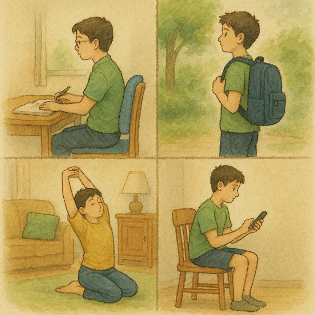 特に学生の場合、通学や勉強中の姿勢、家庭での過ごし方が再発予防に大きな影響を与えます。