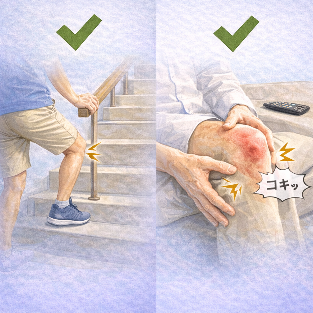 「階段を下りるときだけ痛い」「立ち上がる瞬間に不安定になる」といった訴えは、外来でもよく聞かれます。