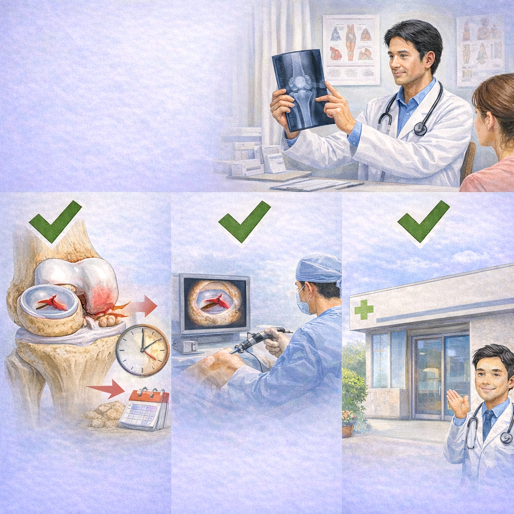 たとえば、同じ半月板損傷でも、自然に治りやすい軽い損傷と、手術を検討した方がよい断裂では対応がまったく異なります。
