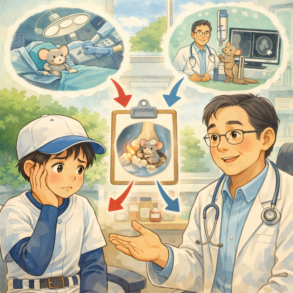 この章では、ねずみの正体である離断性骨軟骨炎(りだんせいこつなんこつえん)を解き明かしていきます。